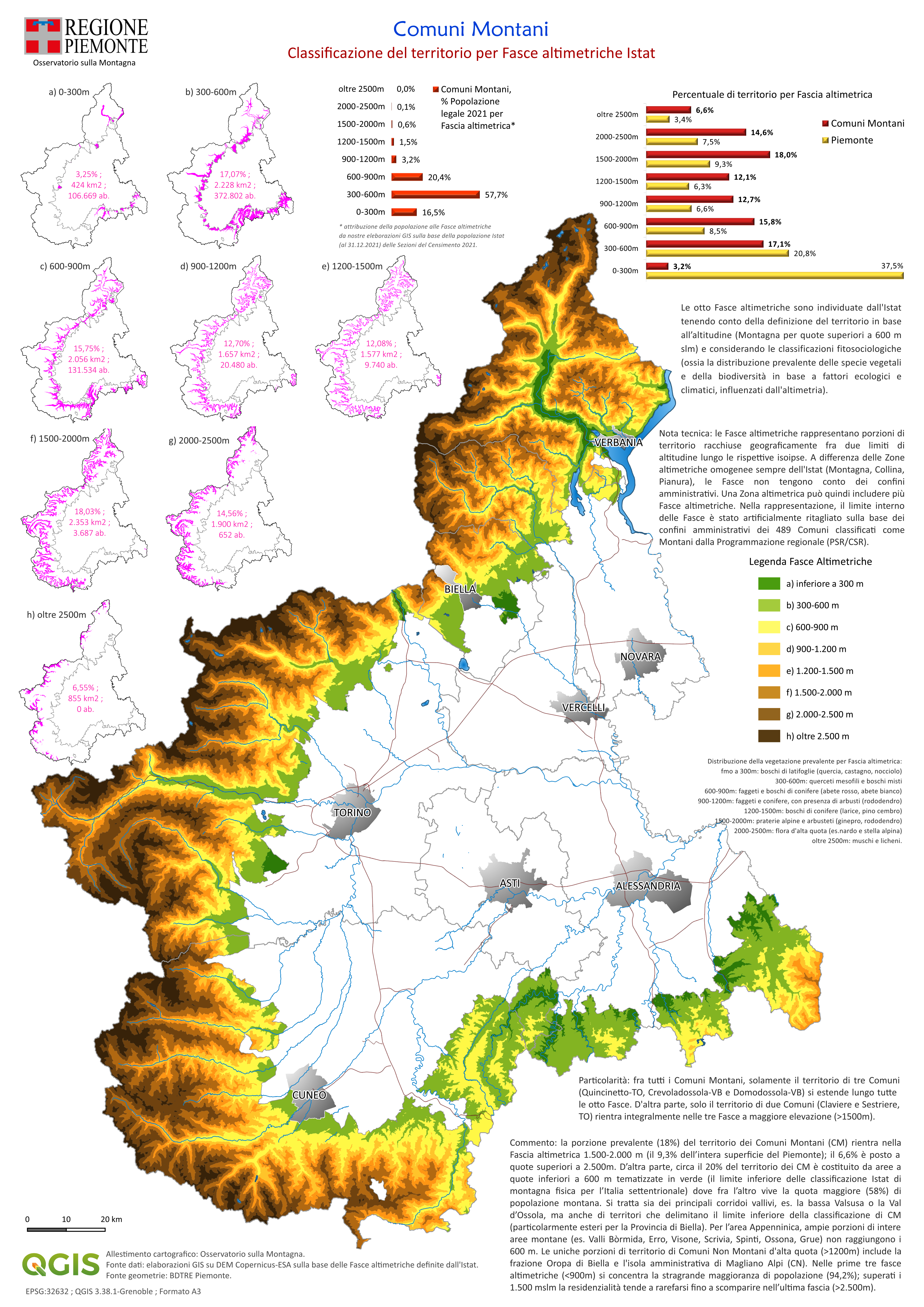 L'Istat definisce tre soglie altimetriche medie: Zona di Pianura (fino a 200 m), Zona di Collina (200-600m) e la Zona Montagna (oltre 600m per l'Italia settentrionale e 700m per l'Italia centro-meridionale). Più nello specifico, le aree montuose del Piemonte rientrano nella sotto tipologia di "Montagna interna". Fin da quando sono state ufficializzate (Istat, "Circoscrizioni statistiche, metodi e norme", 1958), le Zone altimetriche tengono conto dei limiti amministrativi (anziché del "ritaglio territoriale" su specifiche isoipse come fanno le Fasce), assegnando ciascun Comune italiano una sola Zona altimetrica in ragione della sua altitudine media e degli altri fattori citati.